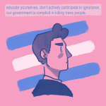 Listen. Read. Educate yourselves. If you are unaware, fix that. Do not be complicit in the societal and legal oppression of transgender Americans.